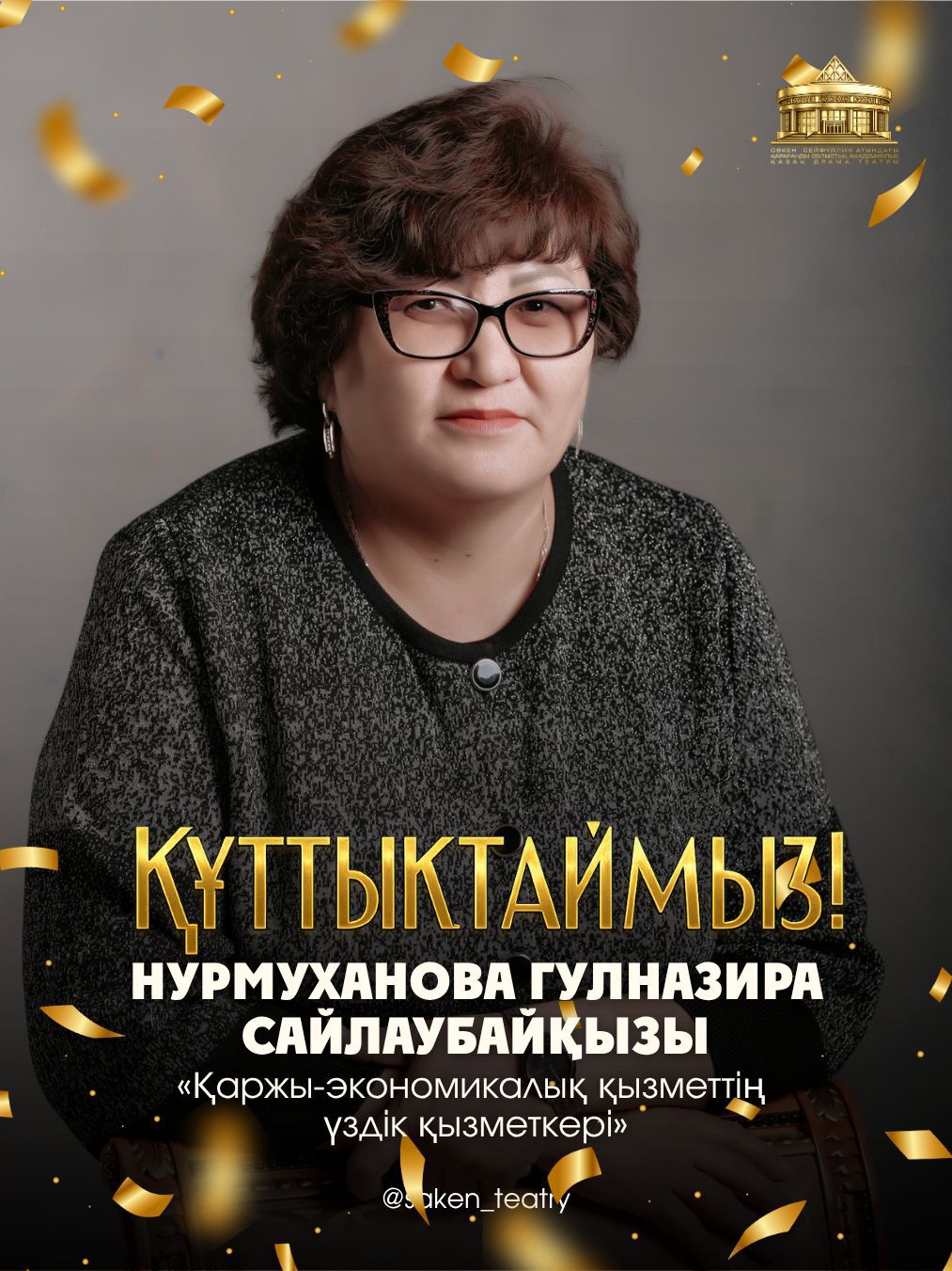"Қаржы-экономикалық қызметінің үздігі" - театрымыздың бас бухгалтері Нурмуханова Гүлназира;