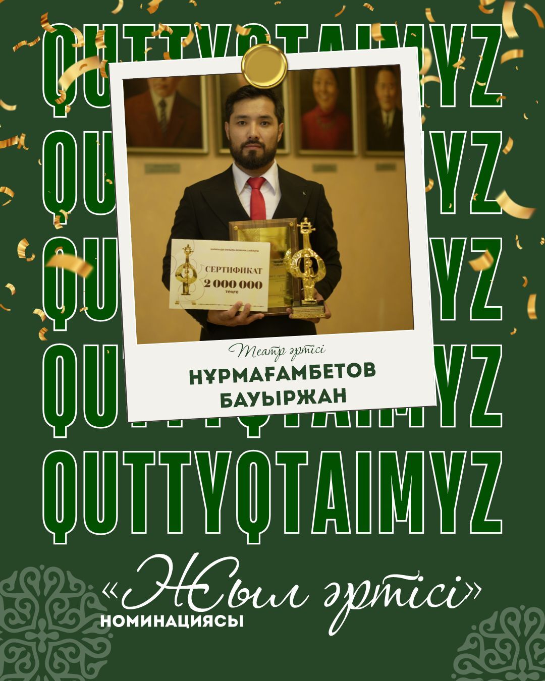 Театр артисі Бауыржан Нұрмағамбетов Облыс әкімі сыйлығының «Жыл әртісі» номинациясымен марапатталып,